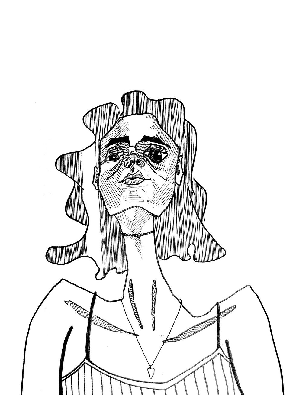 2018 ink on paper, 8.5 x 11. "Line work shading and abstraction applied to portraiture/the human body; my favorite subject matter for the ways that it can be so thought-provoking through different means of abstraction.